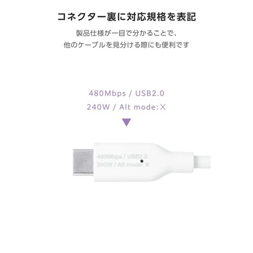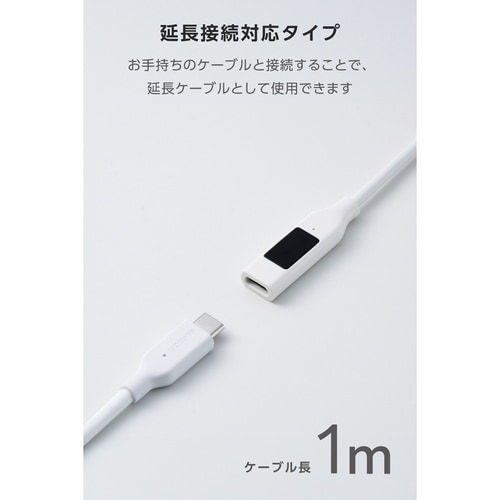 電力表示ディスプレイ搭載 USB Type−C 延長ケーブル 1m PD240W対応 ホワイト