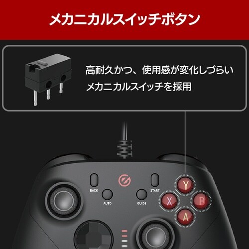XInput/DirectInputの両方に対応した、多機能で高耐久な万能ゲームパッドです。スティックとトリガーにホールエフェクト技術を採用することで、高い耐久と優れた操作性を実現しています。 |