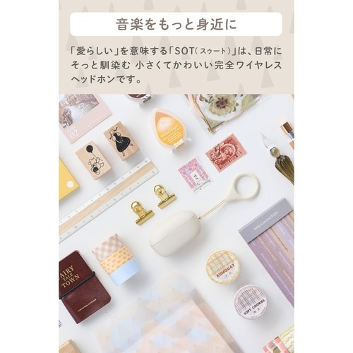 ペンケースにも収まる超ミニサイズと軽さで、日常にそっと馴染む小さくてかわいい完全ワイヤレスヘッドホンです。 |