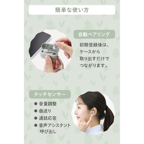 ワイヤレスイヤホン BT超小型 充電ケース 葉色