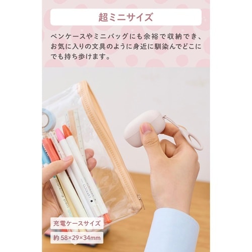 ペンケースにも収まる超ミニサイズと軽さで、日常にそっと馴染む小さくてかわいい完全ワイヤレスヘッドホンです。
