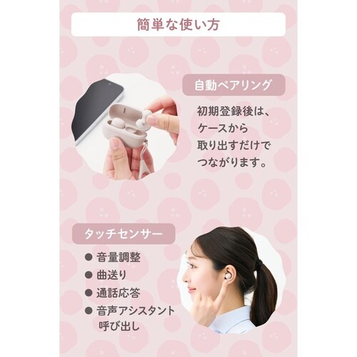 ワイヤレスイヤホン BT超小型 充電ケース 花柄