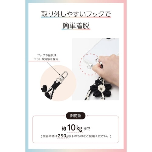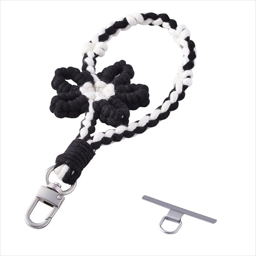 スマホハンドストラップ フラワーモチーフ ブラック