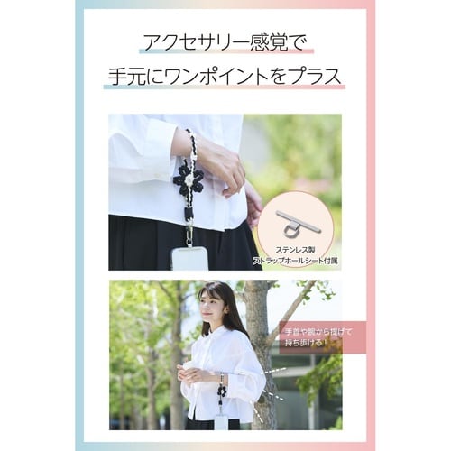 エレコム スマホストラップ フラワーモチーフ ハンドストラップ 落下防止 ブラック A0A3-5733