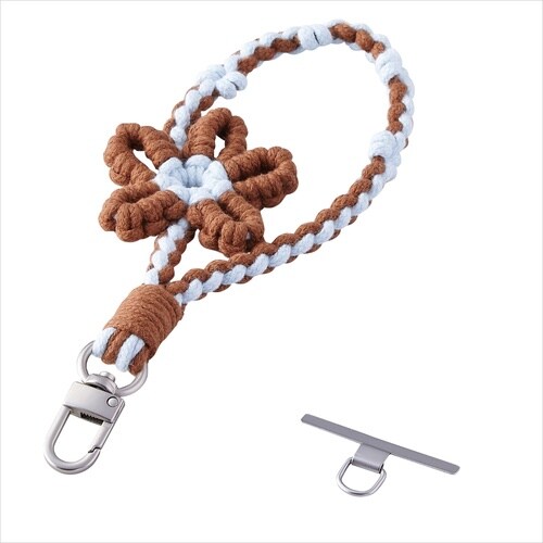 スマホハンドストラップ フラワーモチーフ ブラウン