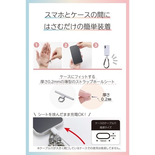 サイズ:ハンドストラップ:全長約320mm、ストラップホールシート:W約45mm×D約0.2mm×H約23mm | 耐荷重:約10kgまで ※250g…