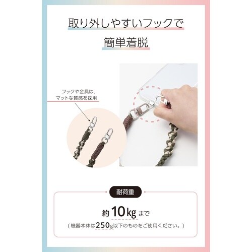 エレコム スマホストラップ 編みロープタイプ ハンドストラップ 落下防止 カーキ A0A3-5738