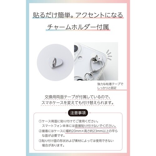 ブラックリボンの落ち着いた質感が、日常使いにほどよくなじむチャームストラップです。毎日持ち歩くスマホを、自分好みに手軽にカスタマイズできるアイテムで、気分に合わせておしゃれを楽しめます。 |