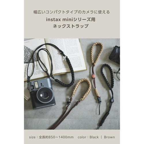 “instax”(チェキ)や“写ルンです”など、幅広いコンパクトタイプのカメラに使えるロープ編みデザインのネックストラップです。首掛け、肩掛け、たすき掛けの3WAYタイプ。 |
