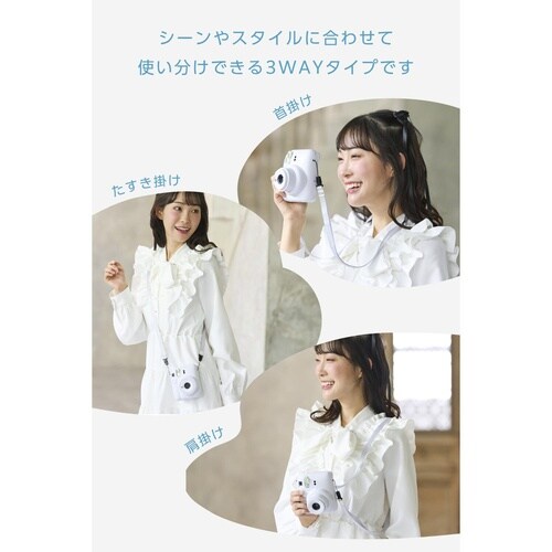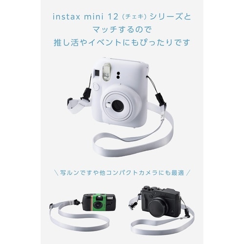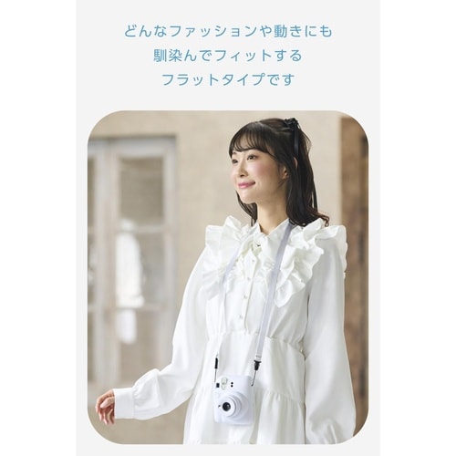 “instax”(チェキ)や“写ルンです”など、幅広いコンパクトタイプのカメラに使えるネックストラップです。首掛け、肩掛け、たすき掛けの3WAYタイプ。 |