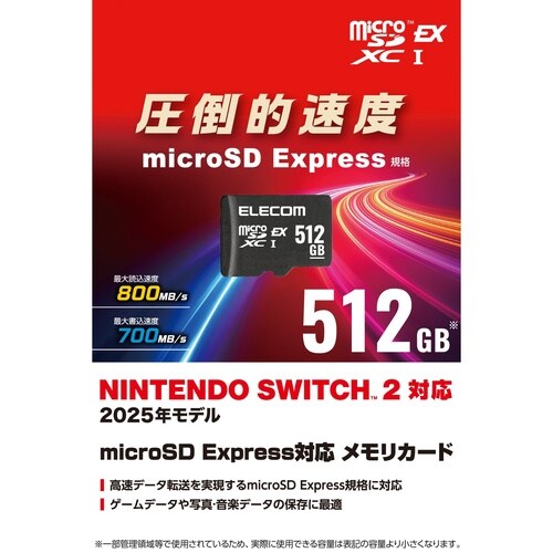 圧倒的速度。microSD Express規格に対応したメモリーカードです。NINTENDO SWITCH 2 2025年モデルでの対応検証済み製品です。 |