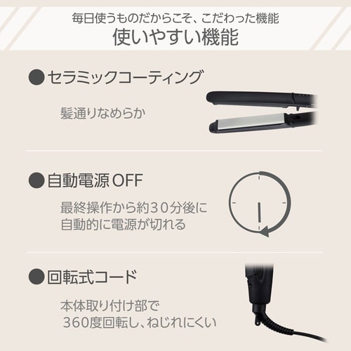 ヘアーアイロン naturam マイナスイオンストレート ブラック