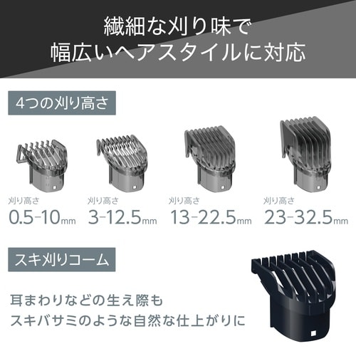 思い通りのラインで、こだわりの仕上がりに。0.5mm単位の繊細な調節で理想のヘアスタイルを実現するヘアカッターです。防水設計・コードレスでどこでも手軽にセルフカットが可能です。 |