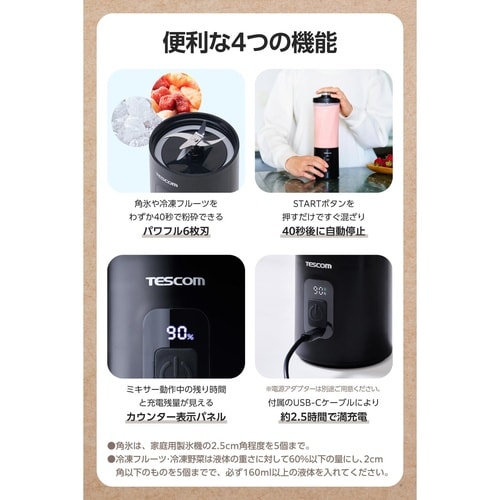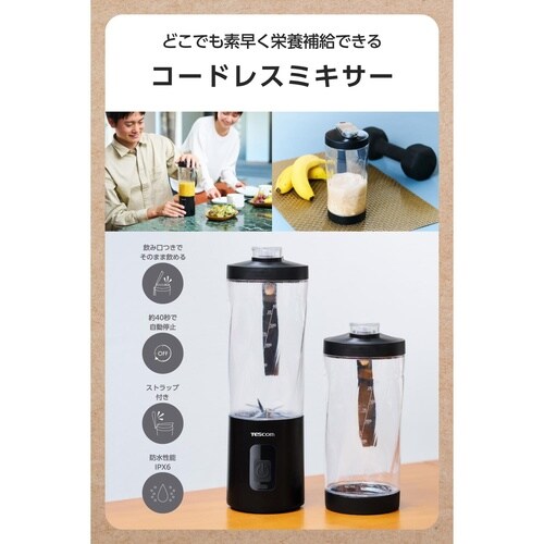テスコム電機株式会社 ミキサー 小型 コードレス 600ml USB充電式 軽量 IPX6防水 ブラック A0A3-5882