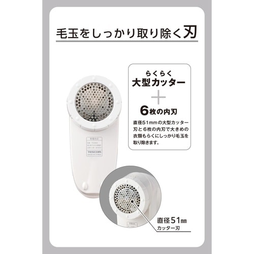 テスコム電機株式会社 毛玉取り 電動 乾電池式 6枚刃 風合いガード5段階調整 ホワイト A0A3-5896