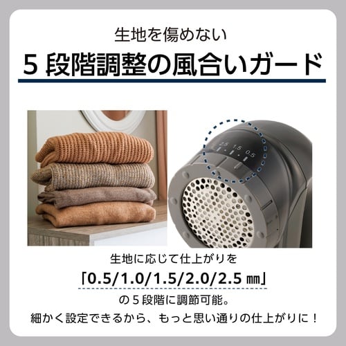 タイツからカーペットまで幅広くケア。お気に入りの服や、何度も着た思い出の一着にできてしまった毛玉も、らくらくお手入れできる毛玉クリーナーです。 |