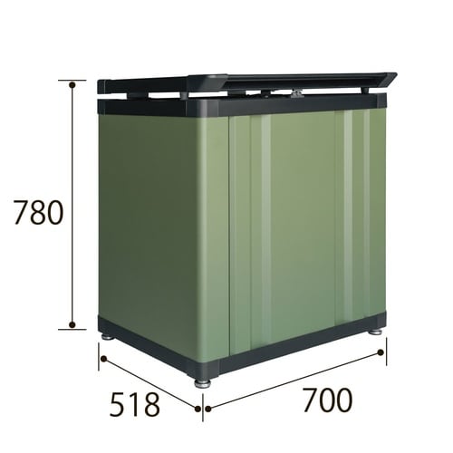 種別:小型収納庫 | カラー:ガーデングリーン | 本体寸法:幅700×奥行518×高さ780mm | 材質:本体:アルミ押し出し形材 パネル:ZAM…