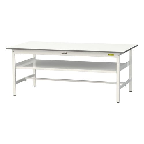 軽量作業台/耐荷重150kg 中間棚付 低圧メラミン天板 ワークテーブル150 W1800D900H740mm SUP−1890F−WW ホワイト 1台【メーカー直送】