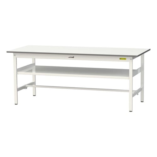 軽量作業台/耐荷重150kg 中間棚付 低圧メラミン天板 ワークテーブル150 W1800D750H740mm SUP−1875F−WW ホワイト 1台【メーカー直送】