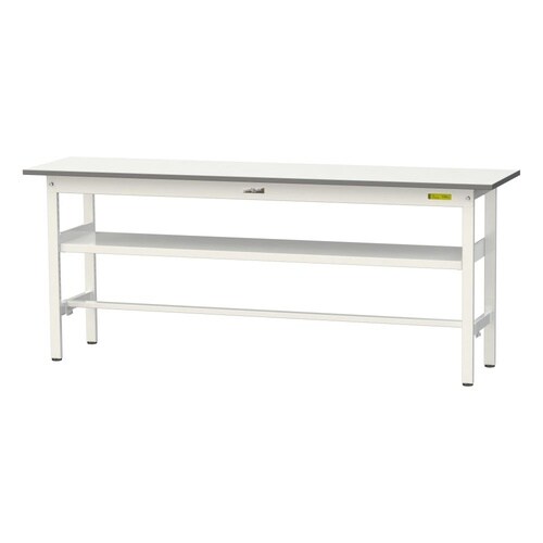 軽量作業台/耐荷重150kg 中間棚付 低圧メラミン天板 ワークテーブル150 W1800D450H740mm SUP−1845F−WW ホワイト 1台【メーカー直送】