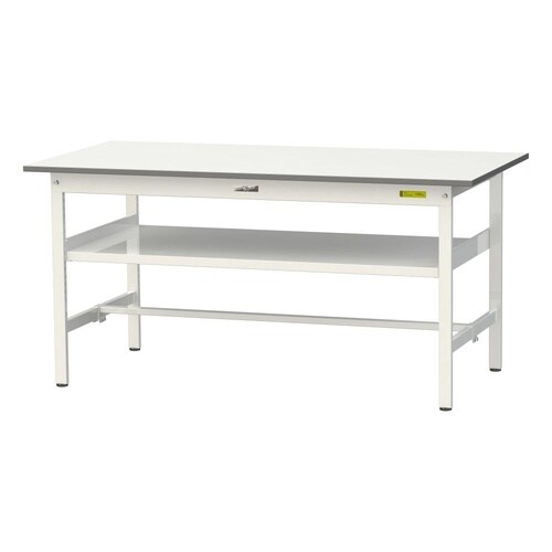 軽量作業台/耐荷重150kg 中間棚付 低圧メラミン天板 ワークテーブル150 W1500D750H740mm SUP−1575F−WW ホワイト 1台【メーカー直送】
