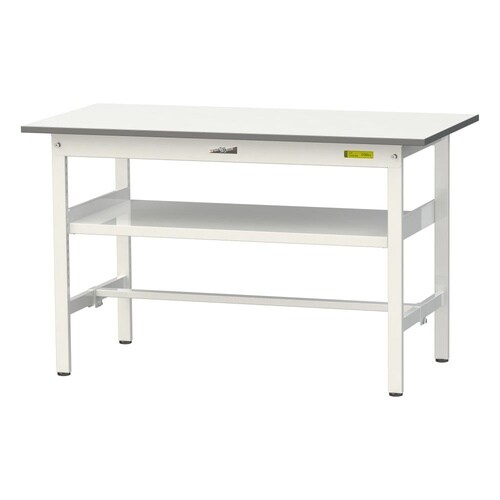 軽量作業台/耐荷重150kg 中間棚付 低圧メラミン天板 ワークテーブル150 W1200D600H740mm SUP−1260F−WW ホワイト 1台【メーカー直送】