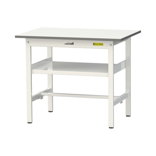 軽量作業台/耐荷重150kg 中間棚付 低圧メラミン天板 ワークテーブル150 W900D600H740mm SUP−960F−WW ホワイト 1台【メーカー直送】