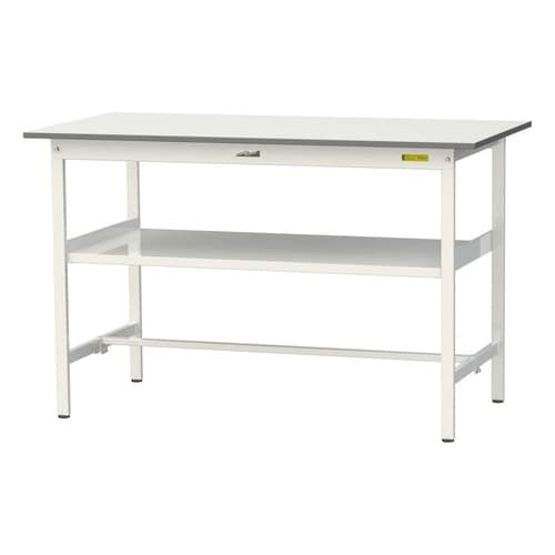 軽量作業台/耐荷重150kg 中間棚付 低圧メラミン天板 ワークテーブル150 W1500D750H950mm SUPH−1575F−WW ホワイト 1台【メーカー直送】