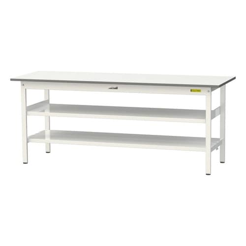 軽量作業台/耐荷重150kg 中間棚付 全面棚付 低圧メラミン天板 ワークテーブル150 W1800D600H740mm SUP−1860TTF−WW ホワイト 1台【メーカー直送】