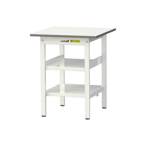 軽量作業台/耐荷重150kg 中間棚付 全面棚付 低圧メラミン天板 ワークテーブル150 W600D600H740mm SUP−660TTF−WW ホワイト 1台【メーカー直送】