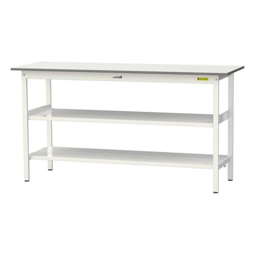 軽量作業台/耐荷重150kg 中間棚付 全面棚付 低圧メラミン天板 ワークテーブル150 W1800D600H950mm SUPH−1860TTF−WW ホワイト 1台【メーカー直送】