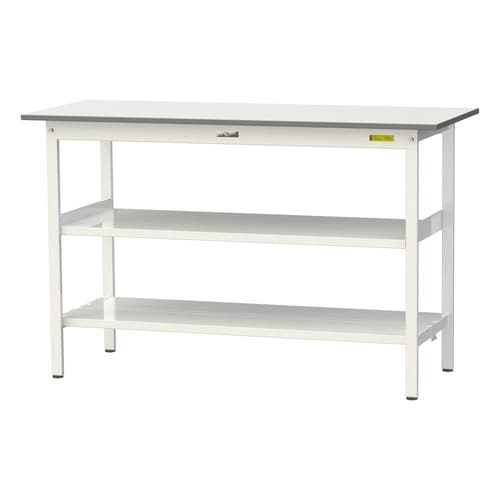 軽量作業台/耐荷重150kg 中間棚付 全面棚付 低圧メラミン天板 ワークテーブル150 W1500D600H950mm SUPH−1560TTF−WW ホワイト 1台【メーカー直送】