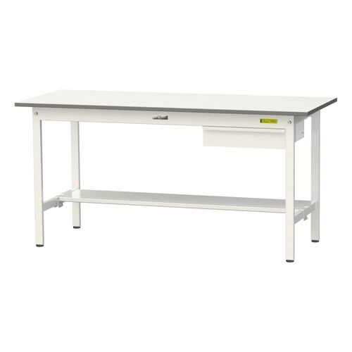 軽量作業台/耐荷重150kg 引出付 半面棚付 低圧メラミン天板 ワークテーブル150 W1500D600H740mm SUP−1560UT−WW ホワイト 1台【メーカー直送】