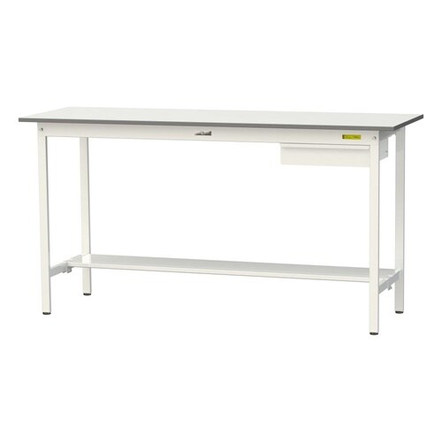 軽量作業台/耐荷重150kg 引出付 半面棚付 低圧メラミン天板 ワークテーブル150 W1800D600H950mm SUPH−1860UT−WW ホワイト 1台【メーカー直送】