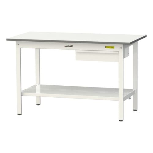 軽量作業台/耐荷重150kg 引出付 全面棚付 低圧メラミン天板 ワークテーブル150 W1200D600H740mm SUP−1260UTT−WW ホワイト 1台【メーカー直送】