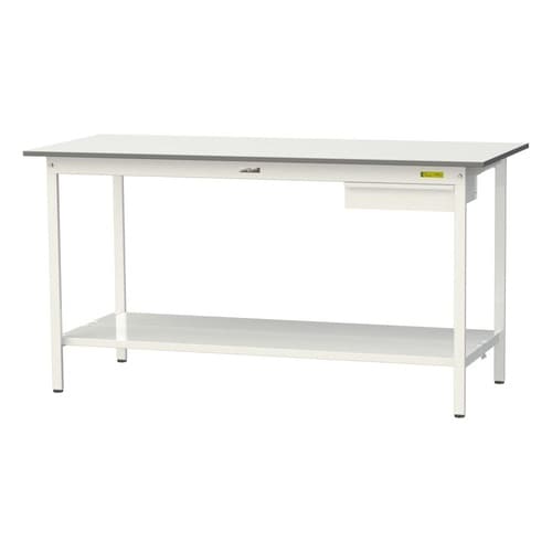 軽量作業台/耐荷重150kg 引出付 全面棚付 低圧メラミン天板 ワークテーブル150 W1800D750H950mm SUPH−1875UTT−WW ホワイト 1台【メーカー直送】