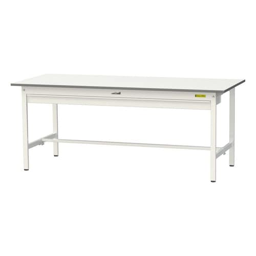 軽量作業台/耐荷重150kg ワイド引出付 低圧メラミン天板 ワークテーブル150 W1800D750H740mm SUP−1875W−WW ホワイト 1台【メーカー直送】