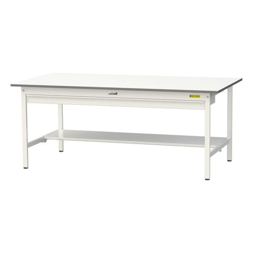 軽量作業台/耐荷重150kg ワイド引出付 半面棚付 低圧メラミン天板 ワークテーブル150 W1800D900H740mm SUP−1890WT−WW ホワイト 1台【メーカー直送】