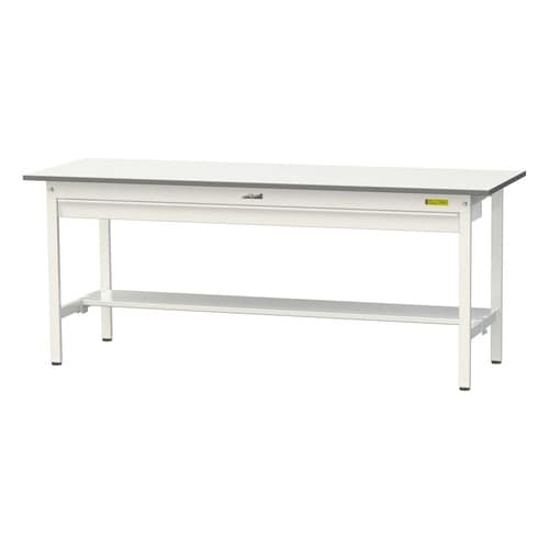 軽量作業台/耐荷重150kg ワイド引出付 半面棚付 低圧メラミン天板 ワークテーブル150 W1800D600H740mm SUP−1860WT−WW ホワイト 1台【メーカー直送】