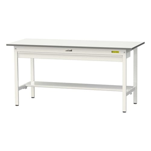 軽量作業台/耐荷重150kg ワイド引出付 半面棚付 低圧メラミン天板 ワークテーブル150 W1500D600H740mm SUP−1560WT−WW ホワイト 1台【メーカー直送】