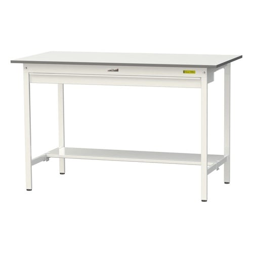 軽量作業台/耐荷重150kg ワイド引出付 半面棚付 低圧メラミン天板 ワークテーブル150 W1500D750H950mm SUPH−1575WT−WW ホワイト 1台【メーカー直送】