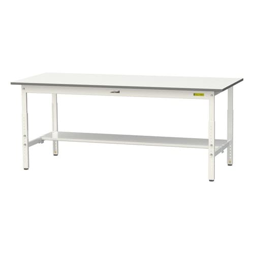 軽量作業台/耐荷重150kg 高さ調整式 半面棚付 低圧メラミン天板 ワークテーブル150 W1800D750H600−900mm SUPA−1875T−WW ホワイト 1台【メーカー直送】