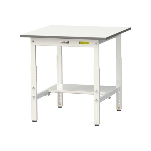 軽量作業台/耐荷重150kg 高さ調整式 半面棚付 低圧メラミン天板 ワークテーブル150 W750D750H600−900mm SUPA−775T−WW ホワイト 1台【メーカー直送】