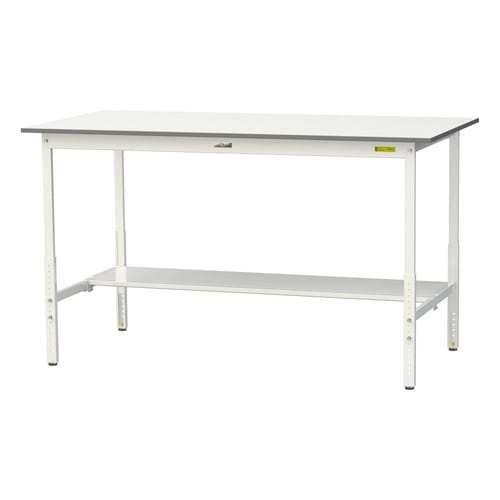 軽量作業台/耐荷重150kg 高さ調整式 半面棚付 低圧メラミン天板 ワークテーブル150 W1800D900H900−1200mm SUPAH−1890T−WW ホワイト 1台【メーカー直送】