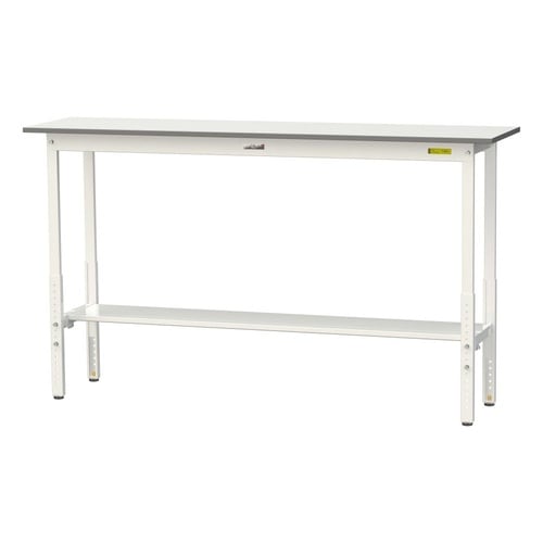 軽量作業台/耐荷重150kg 高さ調整式 半面棚付 低圧メラミン天板 ワークテーブル150 W1800D450H900−1200mm SUPAH−1845T−WW ホワイト 1台【メーカー直送】