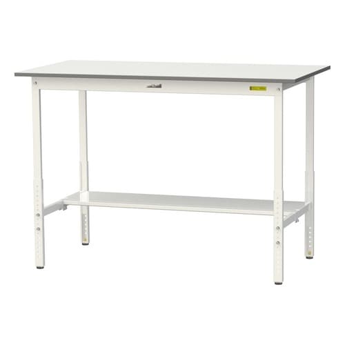 軽量作業台/耐荷重150kg 高さ調整式 半面棚付 低圧メラミン天板 ワークテーブル150 W1500D750H900−1200mm SUPAH−1575T−WW ホワイト 1台【メーカー直送】