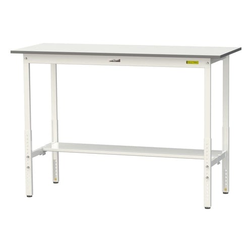 軽量作業台/耐荷重150kg 高さ調整式 半面棚付 低圧メラミン天板 ワークテーブル150 W1500D600H900−1200mm SUPAH−1560T−WW ホワイト 1台【メーカー直送】