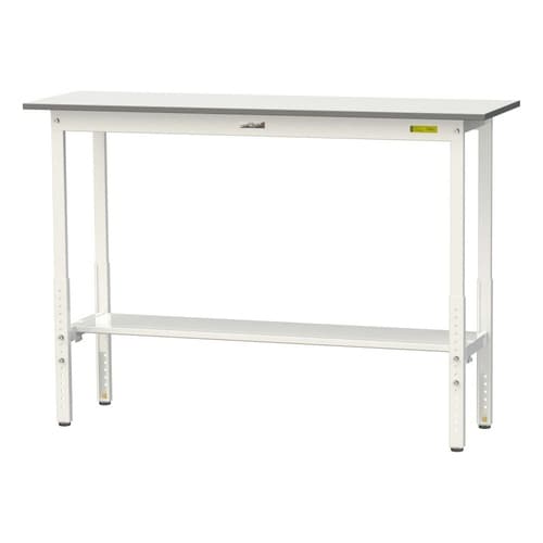 軽量作業台/耐荷重150kg 高さ調整式 半面棚付 低圧メラミン天板 ワークテーブル150 W1500D450H900−1200mm SUPAH−1545T−WW ホワイト 1台【メーカー直送】