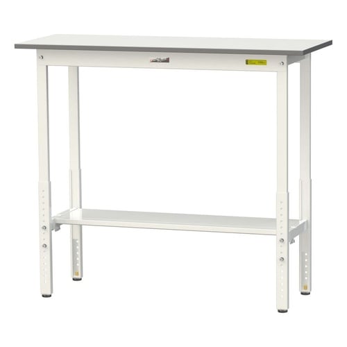 軽量作業台/耐荷重150kg 高さ調整式 半面棚付 低圧メラミン天板 ワークテーブル150 W1200D450H900−1200mm SUPAH−1245T−WW ホワイト 1台【メーカー直送】