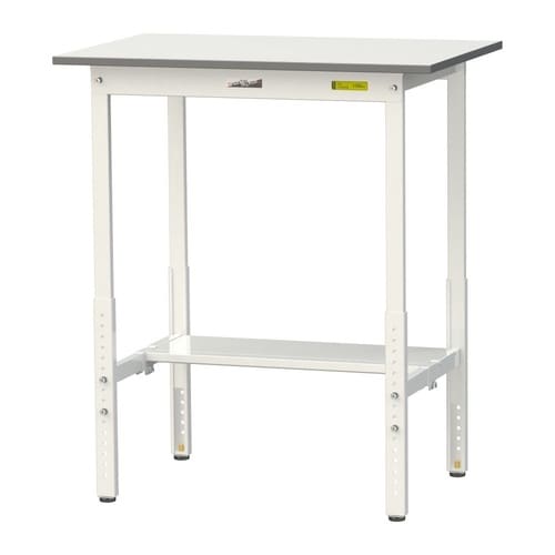 軽量作業台/耐荷重150kg 高さ調整式 半面棚付 低圧メラミン天板 ワークテーブル150 W900D600H900−1200mm SUPAH−960T−WW ホワイト 1台【メーカー直送】